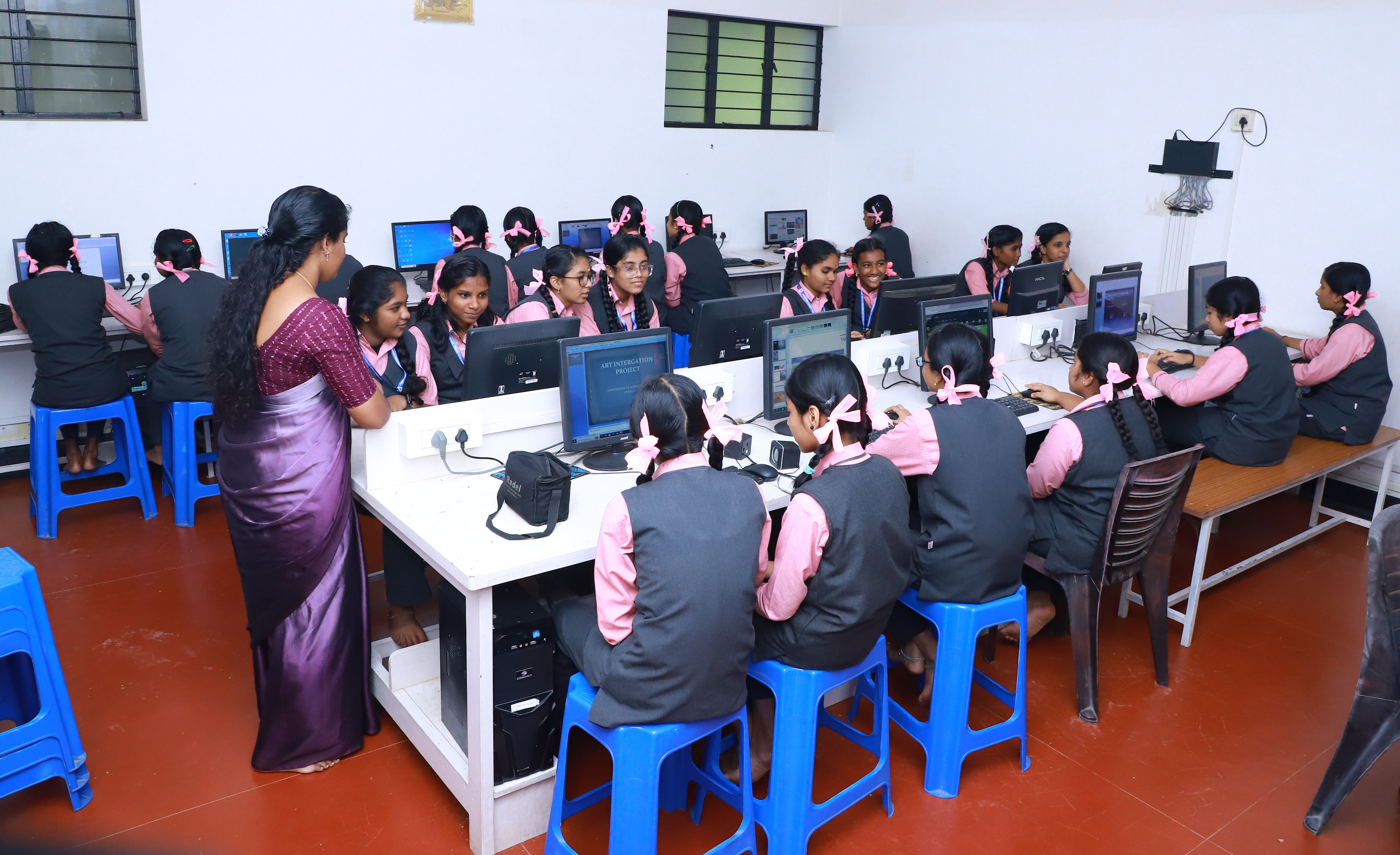 Smart class facility is provided in all subjects for all the class and a well-equipped computer lab is attached to the school. Computer awareness is included in the syllabus for all students from L.K.G. to X. This help the students to understand the subjects very easily (Visually and Lively).